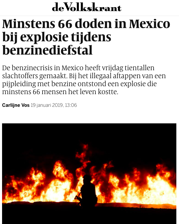 El periódico holandés afirma que “la crisis del petróleo en México causó decenas de víctimas el viernes”.