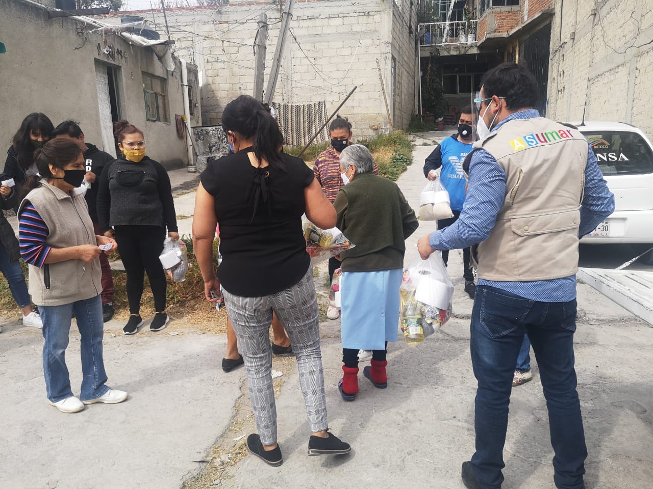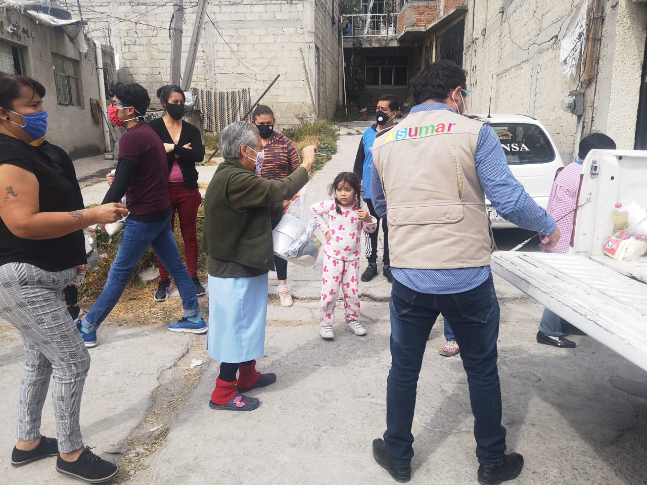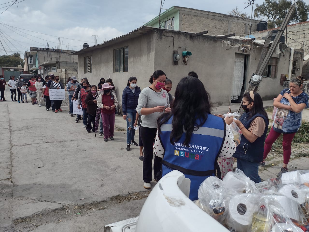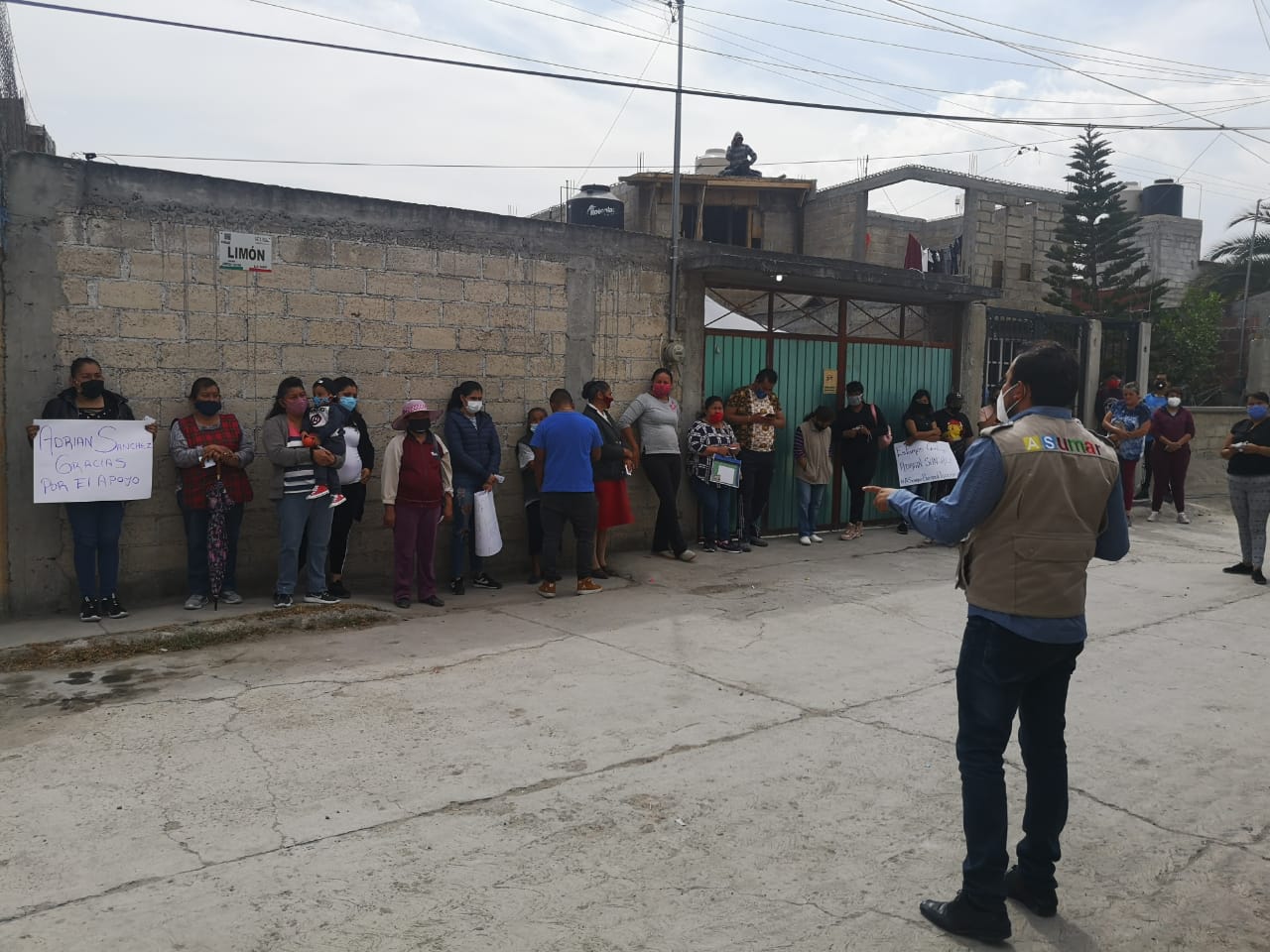 En entrevista Patricia Quiroz nos comenta que agradece mucho el apoyo de Adrián Sanchez y su A.C. ASumar; ya que por el momento esta despensa representa un pequeño respiro para poder destinar sus recursos económicos para la compra de cubrebocas y gel antibacterial para evitar infectarse del “coronavirus” ya que tampoco cuenta con servicio medico de ninguna indole.