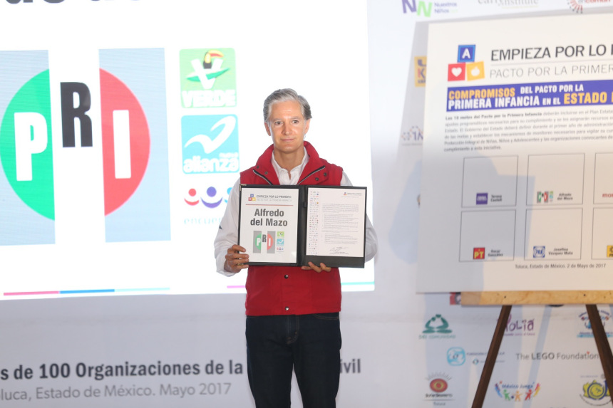 Alfredo Del Mazo, candidato de la coalición PRI, PVEM, Nueva Alianza y Encuentro Social al gobierno de la entidad, reiteró su compromiso de impulsar programas y acciones para que todos los niños mexiquenses tengan un desarrollo sano y de manera integral.