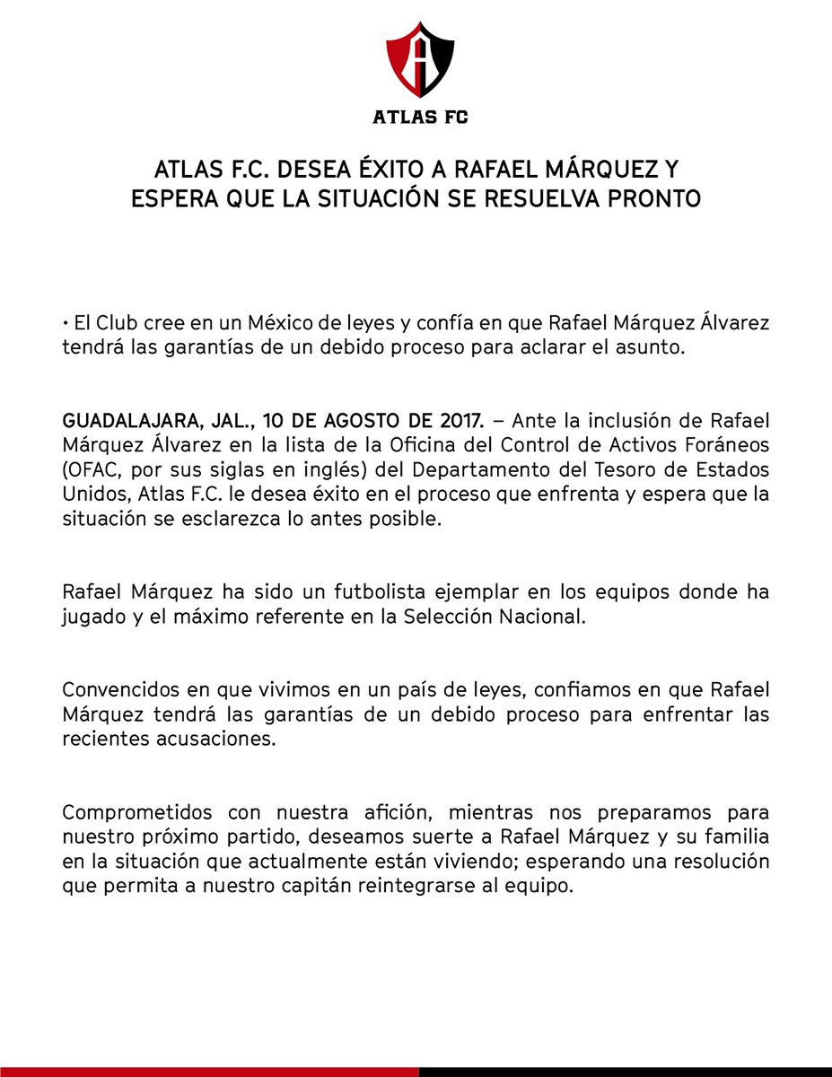 La tarde de este jueves, el club emitió un comunicado donde le “desea éxito” al defensor y “y espera que la situación se resuelva pronto”.