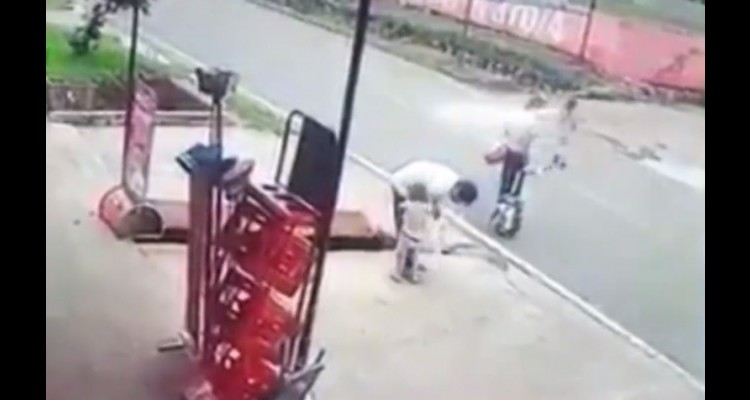 La menos sale volando y cae en una zanja cercana. Aún después de los hechos, los padres se tardan unos segundos en reaccionar.