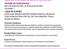 Gana un sueldo de 15 mil 785 pesos siendo especialista INE 2021, oportunidad laboral compartida por la Junta Local Ejecutiva del Instituto Electoral del Estado de México. El empleo …