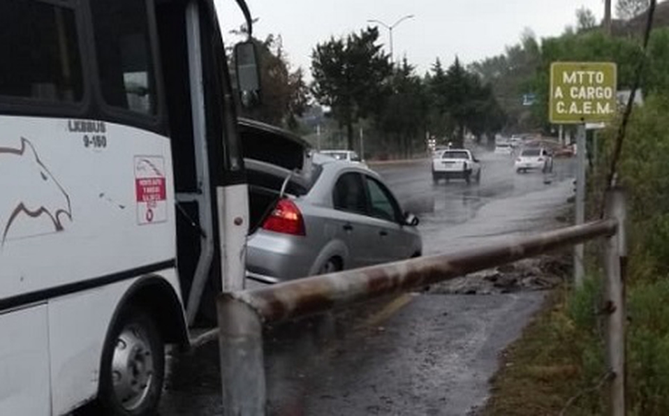 Al caer en el hundimiento, el auto fue golpeado en la parte trasera por un camión de pasajeros, sin dejar lesionados. El auto y el camión fueron retirados por elementos de Protección Civil y Bomberos de Atizapán.