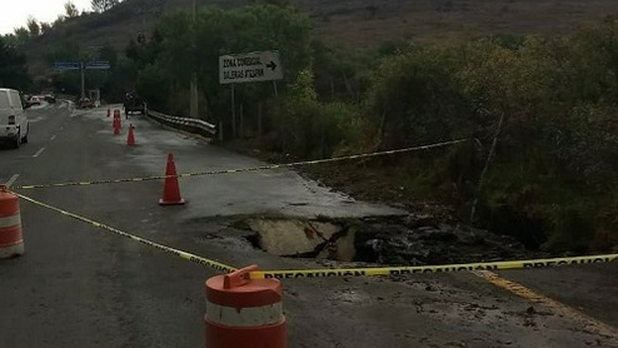 El socavón se abrió en el carril de extrema derecha, con dirección al norte, antes de la conexión al macro Circuito Cutzamala, donde hay reducción de carriles.