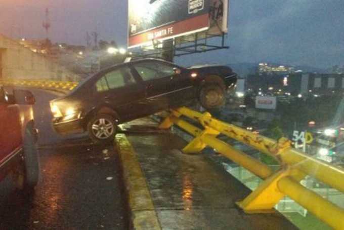 Durante las primeras horas de este miércoles se registraron dos accidentes sobre la autopista y carretera México-Toluca, entre los que un conductor estuvo a punto de caer con todo y su automóvil de un puente.