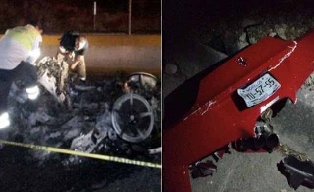 El auto que usó Alberto Sentíes, quien en redes fue bautizado como #LordFerrari, en un incidente vial en 2017, se incendió tras un accidente en la Autopista del Sol, en el tramo Cuernavaca-Chilpancingo.