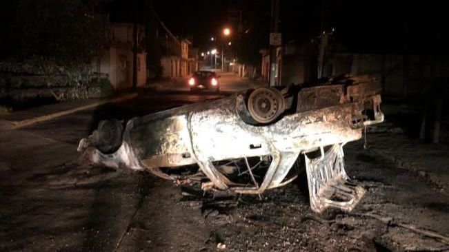 Durante la gresca los pobladores quemaron el Tsuru en el que viajaban los dos presuntos asaltantes y una patrulla de la policía municipal.