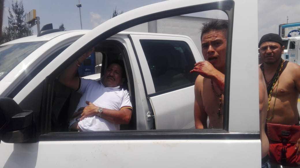 Durante su trayecto, estos tuvieron una fricción de tránsito contra personas que viajaban en el vehículo de la marca Chevrolet, tipo Silverado, color blanco, con placas de circulación NFT2569, de la unidad oficial de la Policía de investigación en donde viajaban el comandante de nombre Gerardo de 55 años de edad, jefe de grupo de Chalco, Fiscalía Regional de Amecameca, en compañía de sus hijos de nombres Gerardo José de 35 años y Luis Gerardo de 23 años de edad, con los cuales se agredieron.