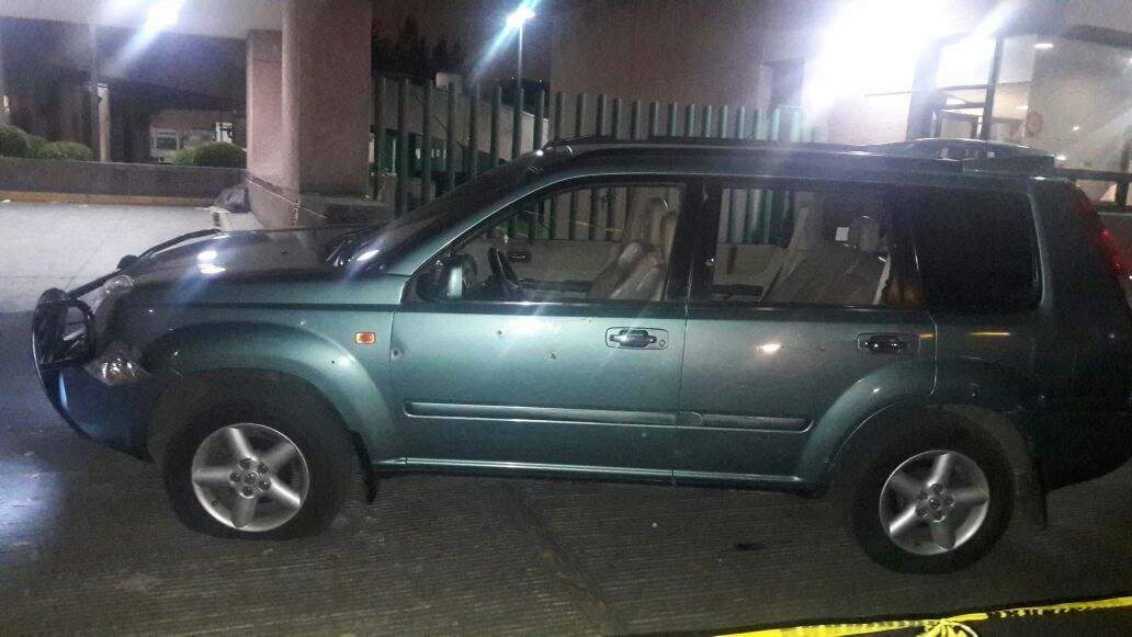 Los agresores aún no identificados dispararon más de 20 veces contra los tres tripulantes de la camioneta verde.