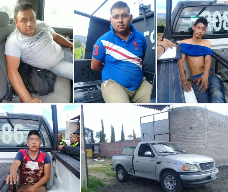 Cuatro sujetos Integrantes de una banda dedicada al robo de vehículos para desvalijarlos fue capturada por la policía estatal durante el operativo Tractor móvil, en la calle Guadalupe Victoria de la colonia ejidos de Tlamincas.