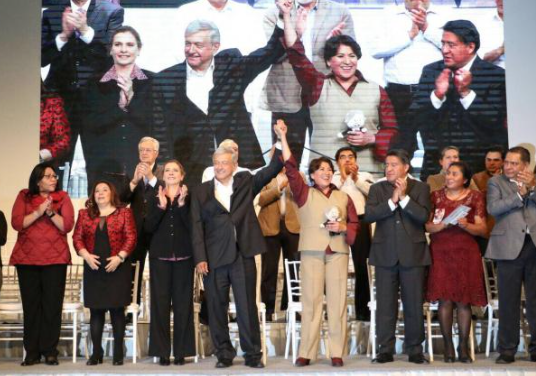 Parte de la ex bancada del PRD y algunos senadores de otros partidos acompañaron a la candidata del Movimiento de Regeneración Nacional a la gubernatura del Estado de México en su visita a Toluca de Lerdo.