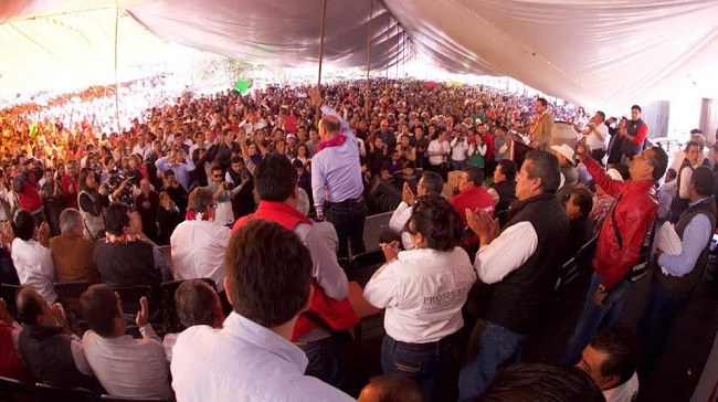 Miles de personas, en su mayoría mujeres beneficiarias del programa Prospera de la Sedesol, fueron acarreadas al Auditorio Metropolitano de Tecámac, en el Estado de México, para reinauguración que llevó a cabo Enrique Peña Nieto.
