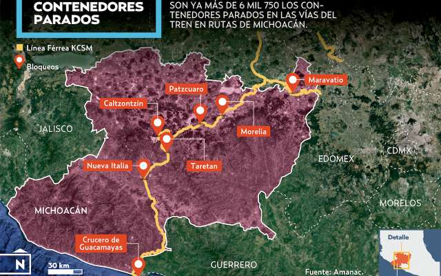 Se trata de ferrocarriles de la firma Kansas City Southern de México (KCSM) con siete puntos bloqueados en la ruta del puerto de Lázaro Cárdenas a la Ciudad de México y dos puntos en la línea de Ferromex de Manzanillo, que conecta con Guadalajara e Irapuato.