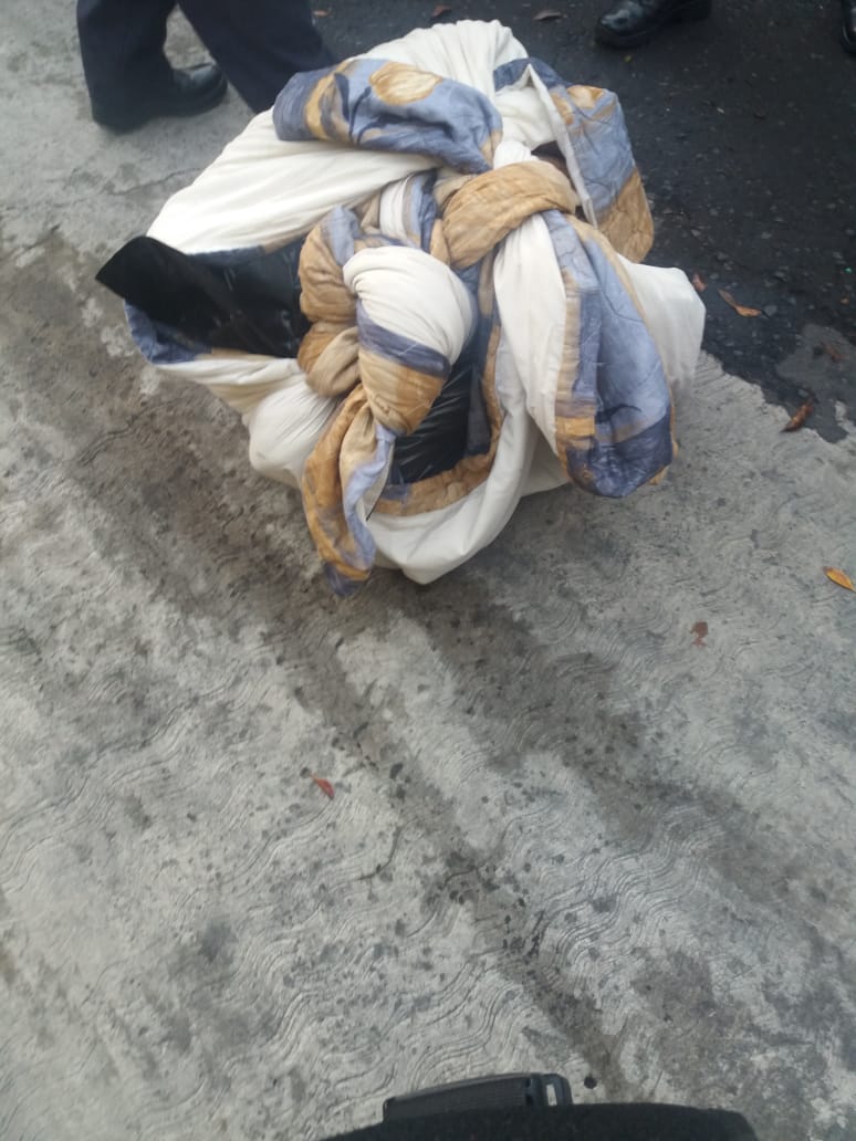 “Se toma conocimiento que en 1ra cda. de San Juan frente al número 29 en la colonia San Miguel Xochimanga Atizapán de Zaragoza, México, de una colcha color beige café y azul la cual en su interior envuelve una bolsa de color negro en bulto, la cual en su interior se alcanza apreciar lo que al parecer es una mano, al lugar arriba el jefe de turno De la policia municipal Victor N. con dos mas abordo de la unidad SP-311, por lo que se espera el arribo del Ministerio público para que realizar las pesquicias correspondientes para corroborar el hecho.”(SIC)