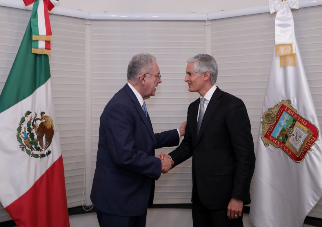 El Gobernador Alfredo Del Mazo Maza sostuvo una reunión con el próximo titular de la Secretaría de Comunicaciones y Transportes (SCT), Javier Jiménez Espriú, en donde hablaron del desarrollo y fortalecimiento del Aeropuerto Internacional de Toluca (AIT).