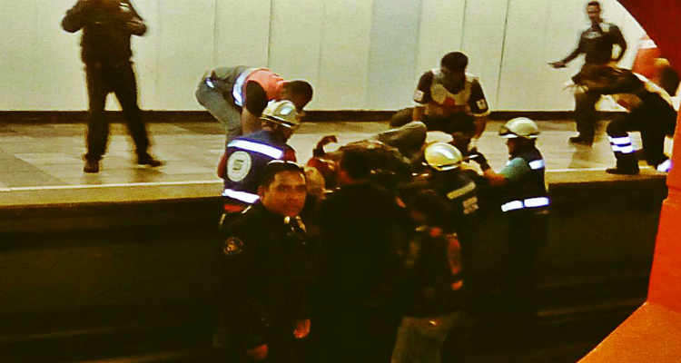 Elementos de seguridad del Sistema de Transporte Colectivo (STC) rescataron al hombre que presentó diversos golpes y quien será evaluado por servicios de emergencia para descartar fractura de tibia en la pierna izquierda.