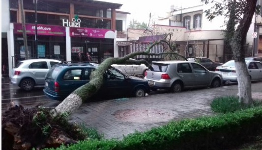 Mencionan, luego que el tronco se desprendiera en su totalidad terminó encima de dos automóviles que estaban sobre la vialidad parados, sin que hubiera heridos pero si daños materiales.