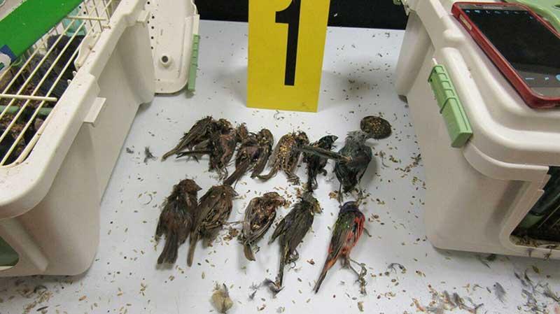 Posteriormente se procedió a la identificación taxonómica de los ejemplares en nueve especies diferentes, entre las que se encuentran 73 aves de pechi café, pico gordo, tigrillo y 95 ejemplares de “azulejo mariposa”, esta última enlistada en la Norma Oficial Mexicana 059 bajo el estatus de “Protección Especial”.