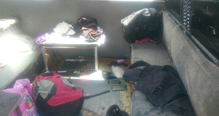 De acuerdo con informes policíacos, los presuntos ladrones tras usar la fuerza para despojar de sus pertenencias a los usuarios del transporte público, cruzaron un puente peatonal en donde los esperaba un cómplice a bordo de una combi pintada como unidad de pasajeros.