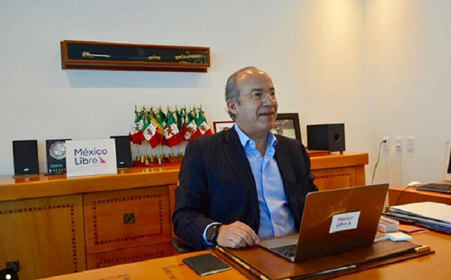 En la imagen, Calderón aparece sentado frente a un escritorio en el que descansa una laptop que tiene una pegatina del partido de su esposa Margarita Zavala. Asimismo, a su espalda se encuentra la imagen que alude a su nueva base política.
