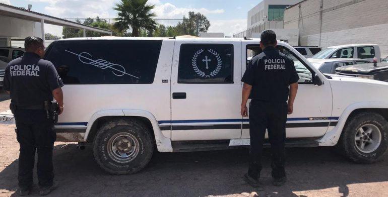 Elementos de la Policía Federal aseguraron una carroza fúnebre reportada como robada que transportaba mil 150 litros de hidrocarburo sustraído ilegalmente en el municipio de Tolcayuca.