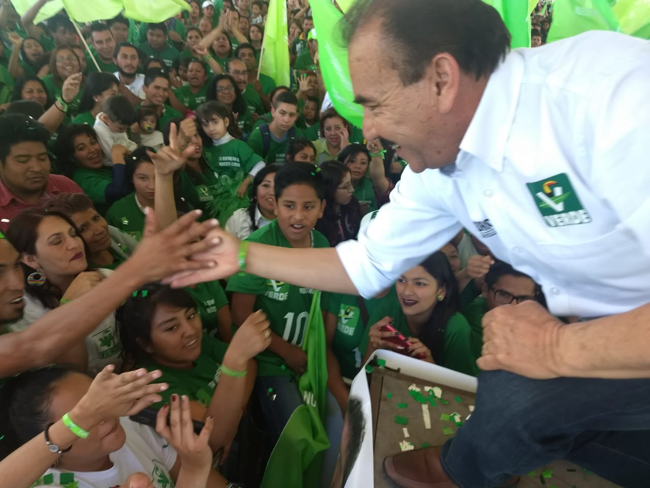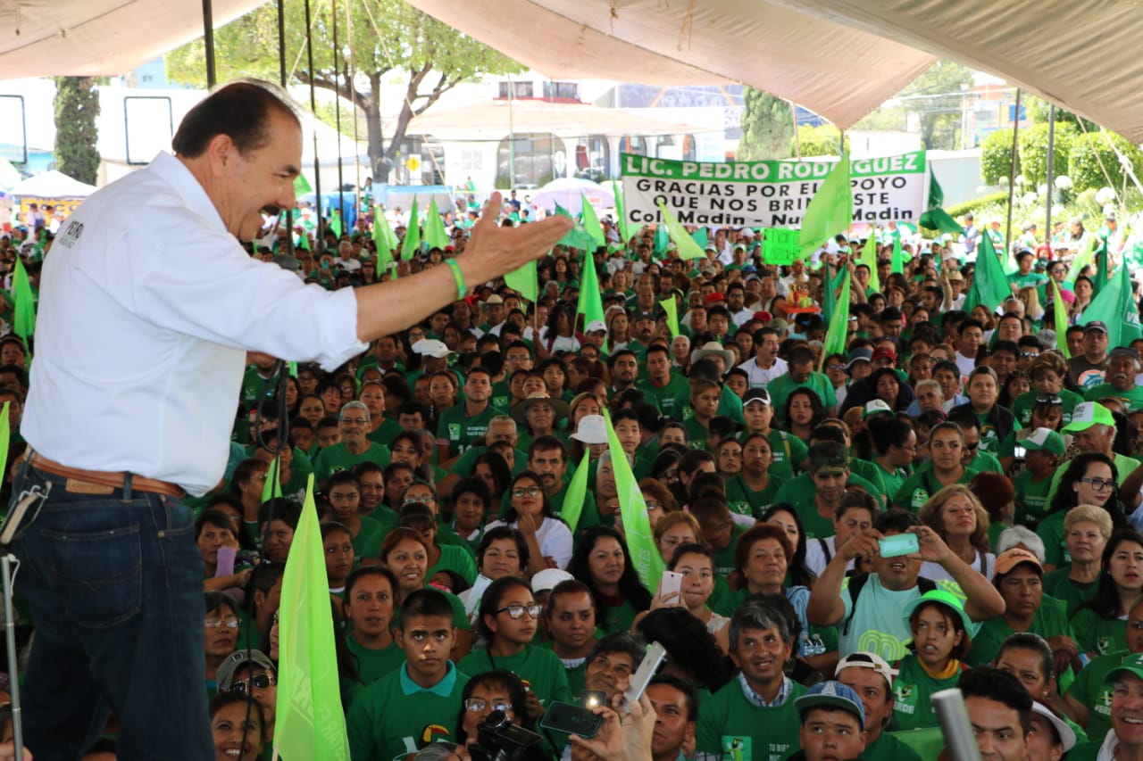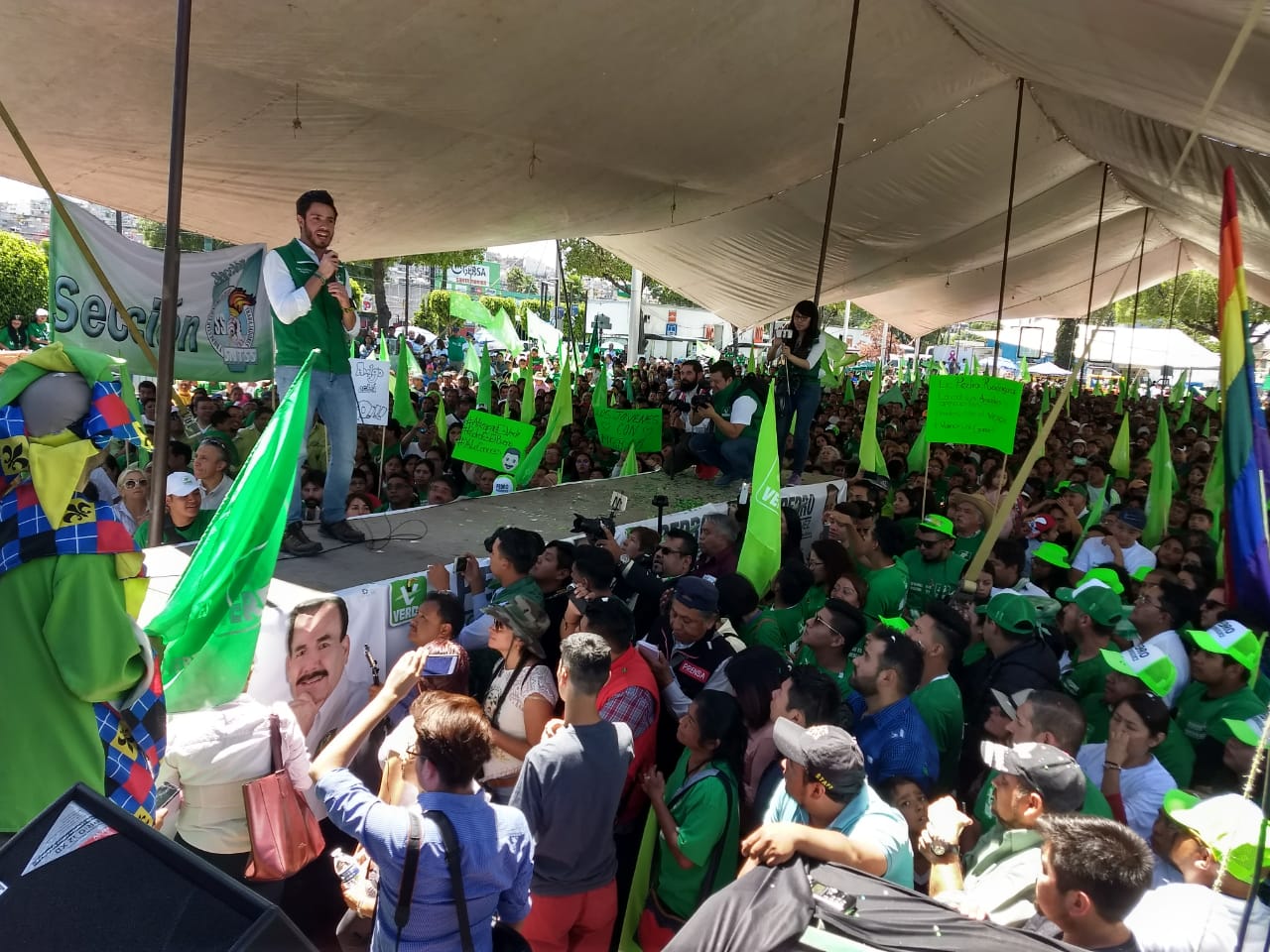Durante su arranque masivo de campaña realizado en la explanada municipal de Atizapán de Zaragoza Pedro Rodríguez Villegas candidato del Partido Verde Ecologista ante más de 9 mil personas más reunidas expresó: