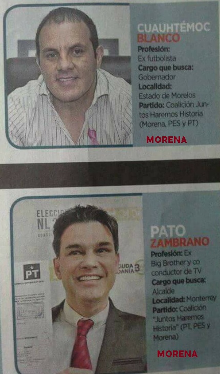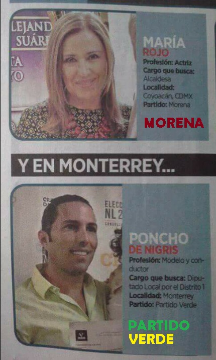 Como ya es sabido, las próximas elecciones contenderán por diputaciones diversos parásitos , sin embargo llama la atención de que ahora tengamos también como candidatos a artistas legisladores y es que no se menosprecia su trabajo, lo que causa asco, es que partidos como NUEVA ALIANZA, ENCUENTRO SOCIAL, PRI y hasta MORENA, tengan como candidatos a estos personajes públicos.