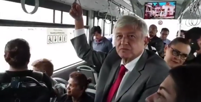 Tras haberse reunido esta mañana con empresarios mexicanos (entre ellos, Carlos Slim Helú) el Presidente electo Andrés Manuel López Obrador, fiel a su costumbre, abordó un camión que lo llevaría al Aeropuerto Internacional Benito Juárez, para después tomar un vuelo comercial pues habría de cubrir algunos compromisos relacionados con su agenda.