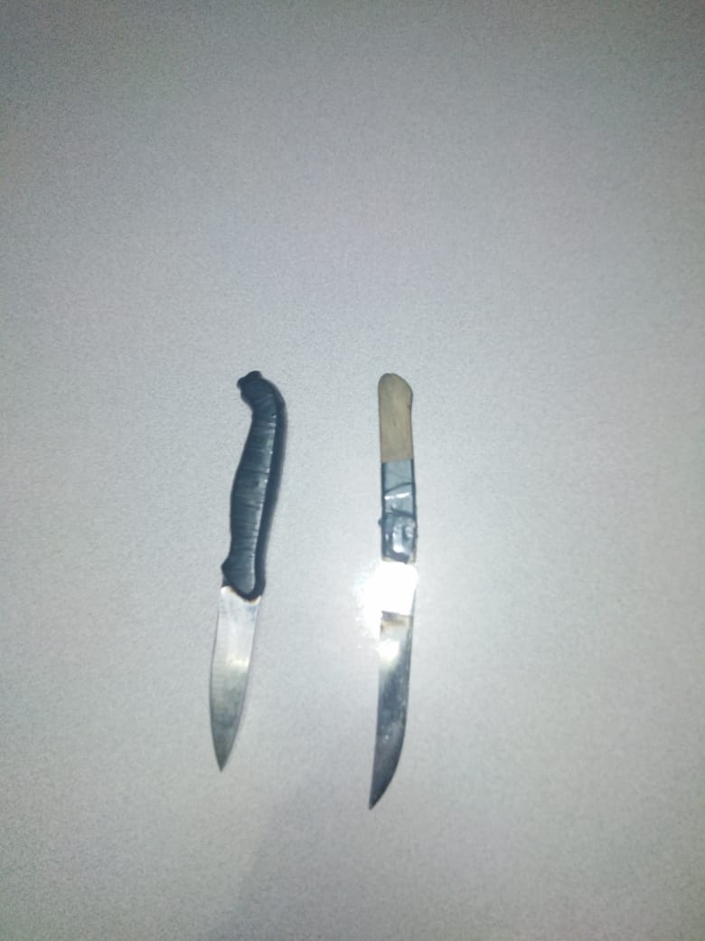 A los sujetos se les encontraron armas blancas, así como mil 950 dólares y 46 mil pesos en efectivo, además de asegurarles un vehículo marca Mazda color gris, modelo CX9, donde transportaban 2 pantallas planas, de las que no pudieron acreditar su propiedad.