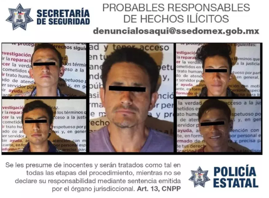 Un total de cinco sujetos fueron capturados por efectivos de la Secretaría de Seguridad (SS) por su probable responsabilidad en los delitos de robo a transporte de carga y portación de arma prohibida en la carretera El Rosal – Aculco, kilómetro 0+500, en el paraje conocido como El Rosal, cuando los uniformados mexiquenses observaron un vehículo Volkswagen, tipo Jetta de color blanco y con los vidrios polarizados, cuyo uso no está permitido dado que obstaculizan la visibilidad al interior.