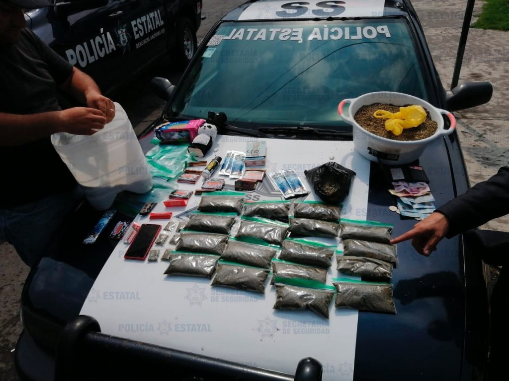 Como resultado de los patrullajes realizados a lo largo del territorio mexiquense, elementos de la Secretaría de Seguridad (SS), aseguraron a cuatro personas por posesión de aproximadamente 4 kilogramos de supuesta marihuana.