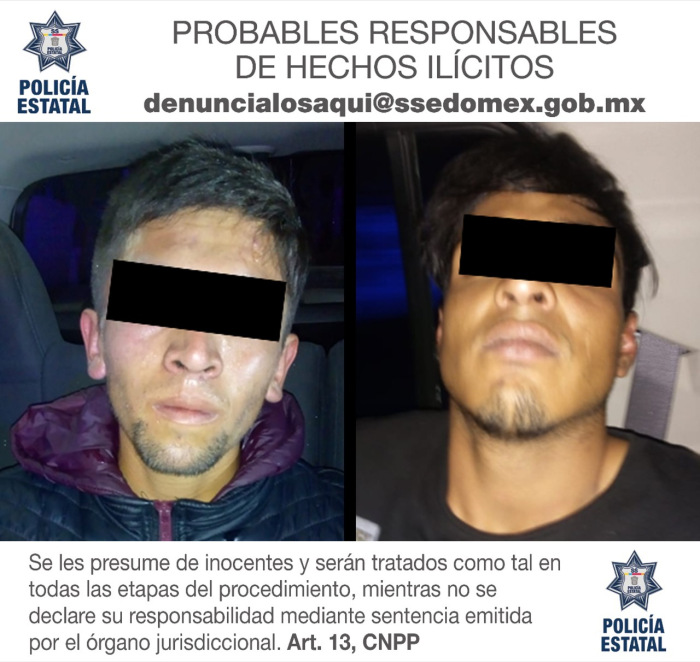 Elementos de la Coordinación Valle de Toluca de la Secretaría de Seguridad (SS) detuvieron a dos personas cuando perpetraban un asalto en una tienda de conveniencia en esta jurisdicción.
