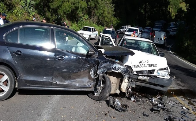 El accidente ocurrió a la altura del kilómetro 35, en los límites con el municipio de Zinacantepec, alrededor de las 8:00 horas al momento que uno de los conductores invadió el carril contrario para rebasar en una curva provocando el choque múltiple, indicó la policía.