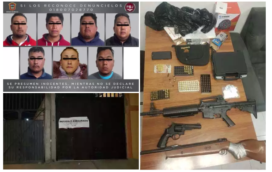Agentes de Investigación de la Fiscalía General de Justicia del Estado de México (FGJEM), catearon un inmueble en la colonia La Esmeralda, en donde localizaron estupefacientes, armas de fuego, así como más de 100 cartuchos útiles de diversos calibres.