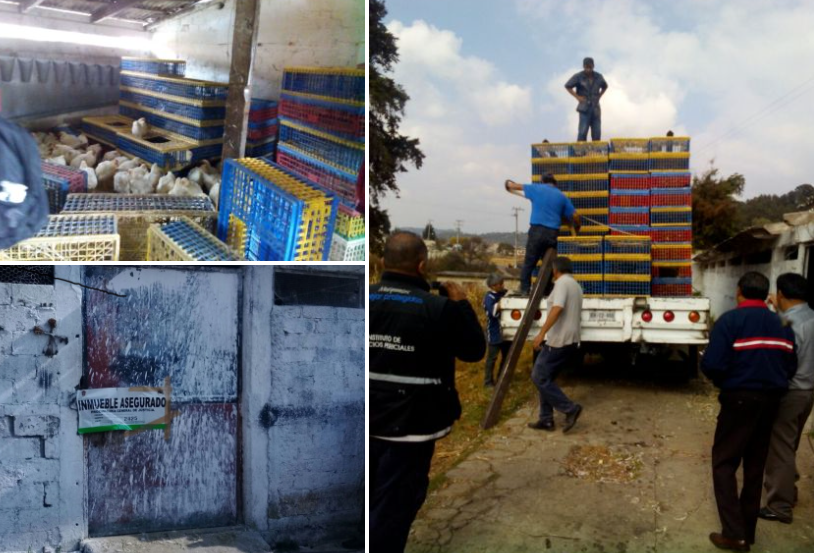 Una vez que la orden de cateo fue otorgada, los servidores públicos se trasladaron al lugar, en donde localizaron y recuperaron un vehículo de carga, así como 252 cajas con un total de 992 pollos vivos.