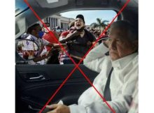 Una foto del presidente mexicano, Andrés Manuel López Obrador, en el interior de un automóvil mientras por la ventana y el espejo retrovisor se ve gente protestando ha sido …