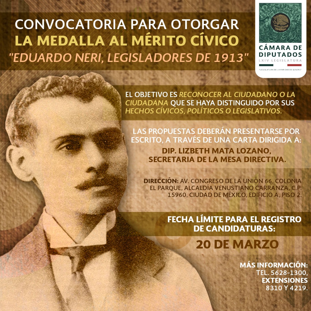 Convocatorias para el otorgamiento de las Preseas, correspondientes al Segundo Año de Ejercicio de la LXIV Legislatura: “Eduardo Neri” Medalla deportiva Medalla Eduardo...