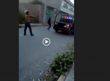 Un policía municipal de Ecatepec fue fácilmente desarmado por un civil, que a la vez, dispara el arma en repetidas ocasiones. De acuerdo a un vídeo, el policía forcejea …