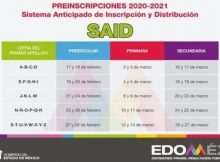 Este lunes 2 de marzo, inician las preinscripciones de manera electrónica, mediante el Sistema Anticipado de Inscripción y Distribución (SAID) al ciclo escolar 2020-2021, para el primer grado de …