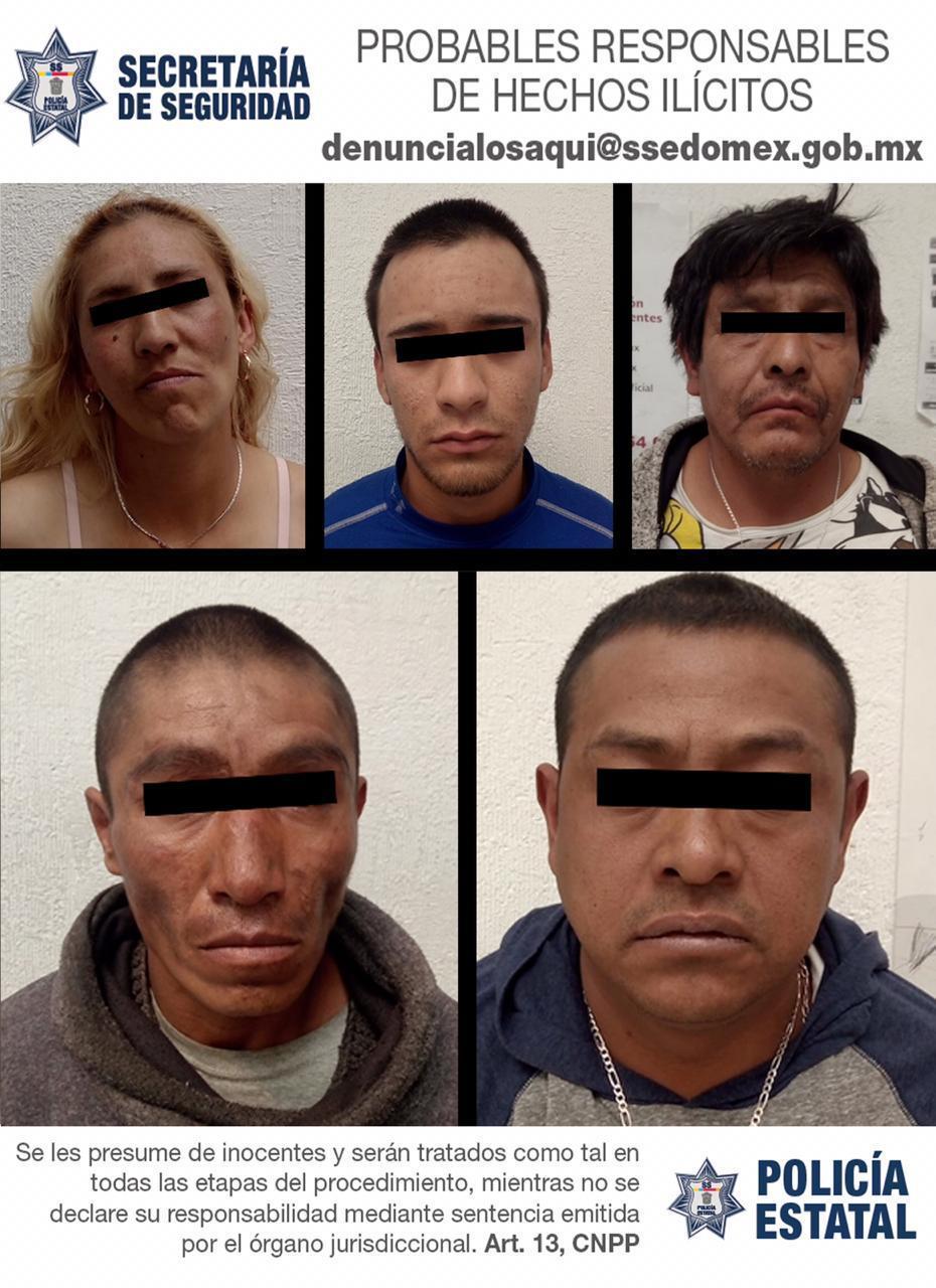 Una mujer y a cuatro hombres, dedicados al robos a tiendas de conveniencia en San Vicente Chicoloapan y Chimalhuacán, así como al narcomenudeo fueron...