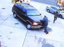 Imágenes de vigilancia capturaron el momento en que la víctima se colocó frente a la camioneta para impedir que el chofer se fuera sin pagar El gerente de una …
