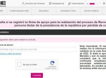 El Instituto Nacional Electoral emitió una página de internet de consulta para saber si se registró su firma de apoyo para la realización del proceso de Revocación de Mandato …