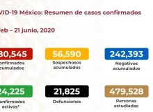 México acumuló, al corte de este 21 de junio, 21 mil 825 muertes por Covid-19, con 180 mil 545 casos de contagios confirmados de coronavirus, según informaron autoridades de …