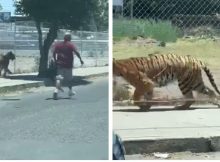 Un tigre fue captado en video mientras caminaba libre en las calles. En la imagen, un grupo de personas lo sigue, le cierran el paso con un vehículo y …