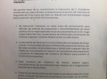El presidente Andrés Manuel López Obrador, mediante un documento oficial, dio instrucciones para prohibir que ningún servidor público emita ningún pronunciamiento sobre el Covid-19, ya que el único vocero …
