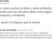 El subsecretario de Relaciones Exteriores, llamado T-MEC, llamó “Loretito” al periodista Carlos Loret de Mola. Loretito, como muchos te dicen y ahora entiendo por qué, pierdes una tras otra …
