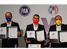 Marko Cortés, Alejandro Moreno y Jesús Zambrano anunciaron que la alianza en la que participan sus partidos lanzarán una contrapropuesta de reforma electoral con la que pretenden regular las …