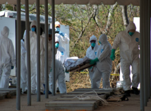 Oficialmente se encontraron 39 bolsas de plástico con los restos de 45 personas, pero también hallaron cientos de fragmentos humanos en la tierra que cubría y rellenaba la fosa …