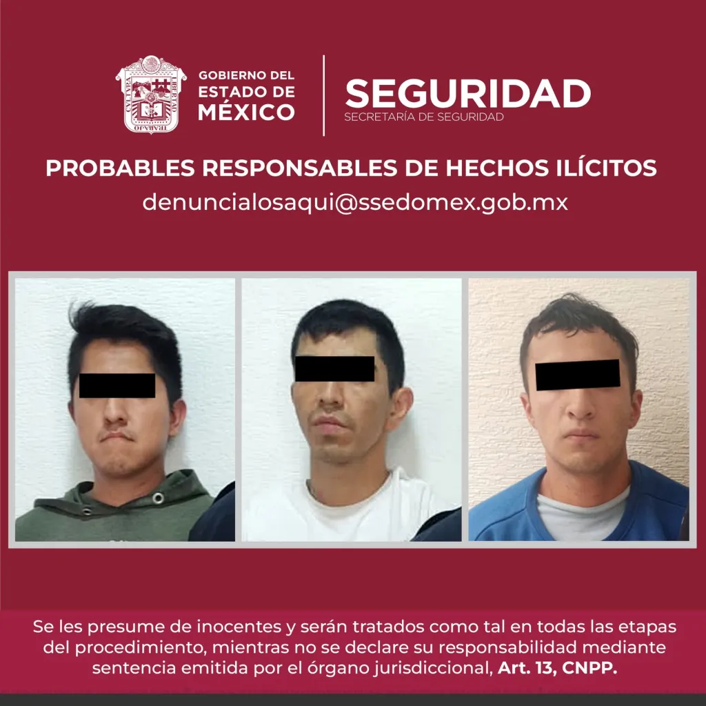 Se detuvo a tres hombres que viajaban a bordo, quienes fueron presentados ante la autoridad competente para deslindar responsabilidades. Los efectivos localizaron al interior...