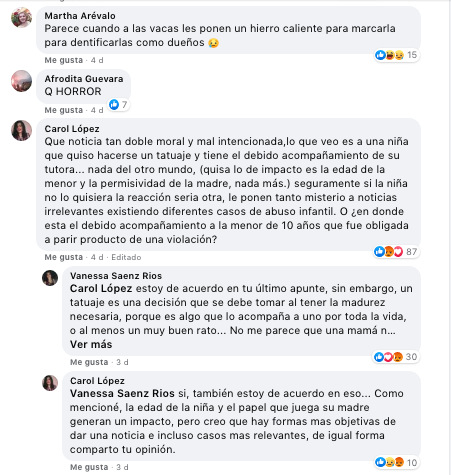 Los usuarios se indignaron por la acción que tomaron de llevar a tatuar a la pequeña, sin embargo otros defendían esta acción ya que “si la menor no hubiera aceptado hacerse el tatuaje, se hubiera negado a ir”.